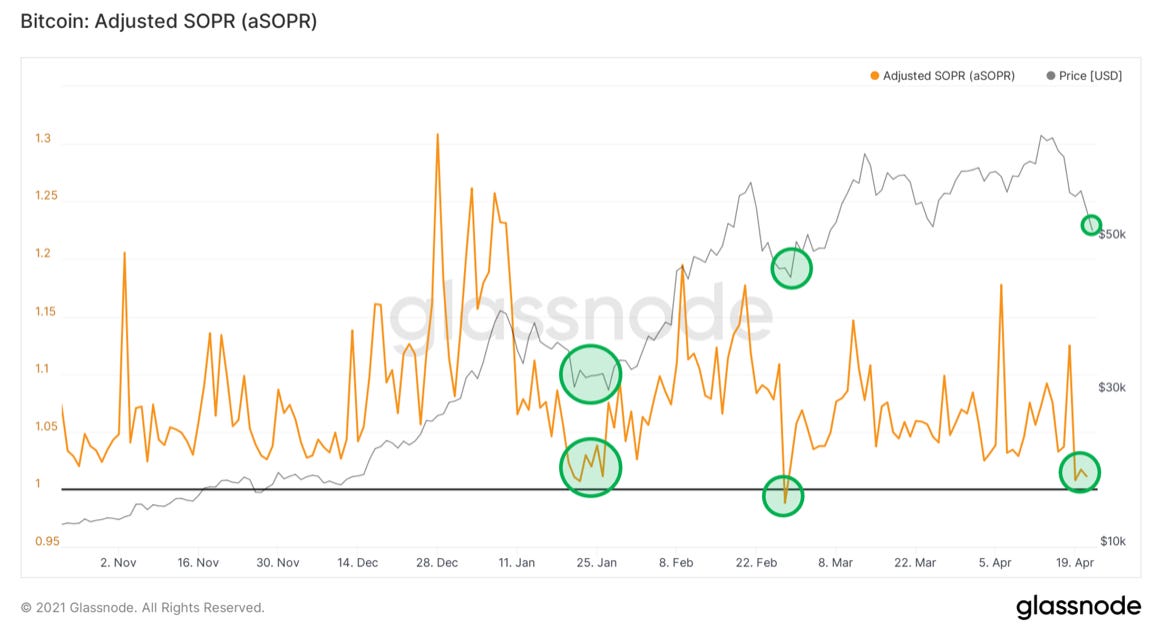 Ok, now i’ll get a little technical. There’s this metric called the Spent Output Profit Ratio (SOPR) This is just financial jargon for “net profits in the market”. In the past, the SOPR resets and allows Bitcoin to move higher. Think of it like flushing out all the short term speculators (flushing out the trash) and long term investors hold on.